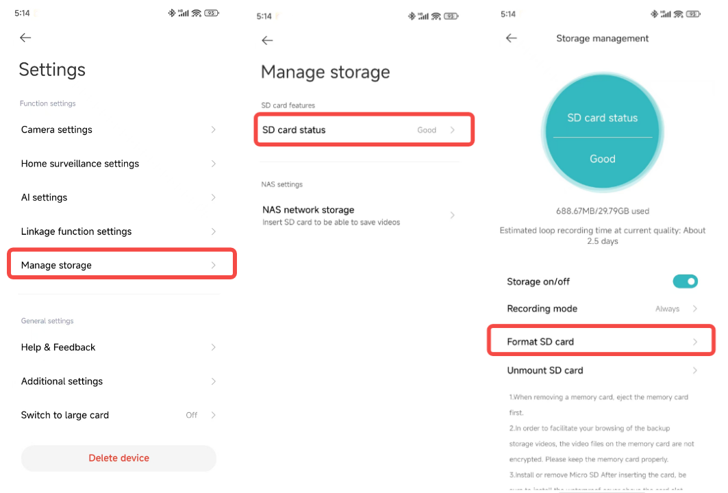 21. Q: Phải làm gì nếu thẻ SD của Xiaomi Outdoor Camera CW500 Dual nhắc không thể định dạng hoặc nhắc liên tục định dạng?