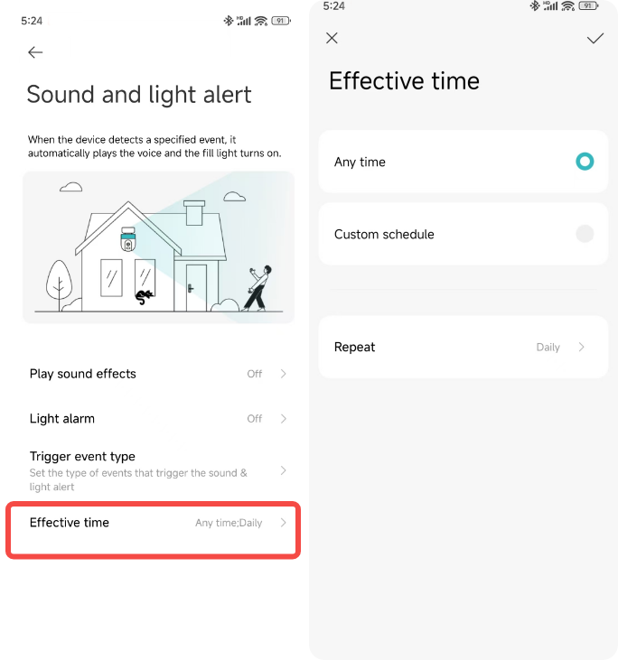 3. Kiểm tra cài đặt độ nhạy và khoảng thời gian báo động trong [Cài đặt giám sát tại nhà];