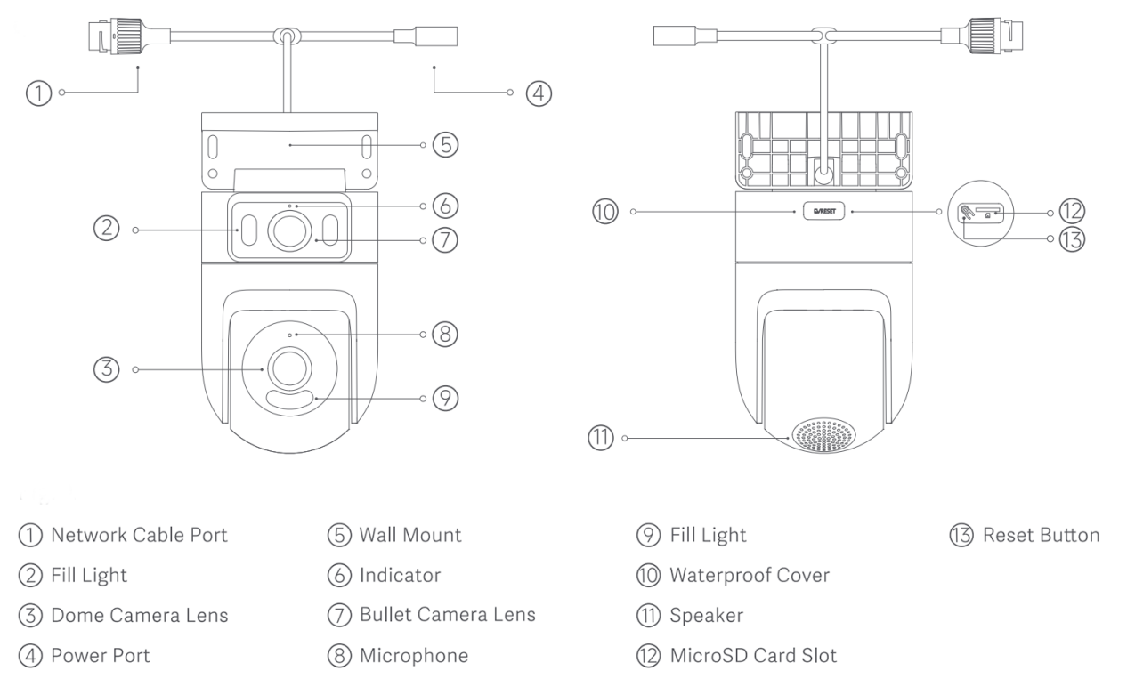 A: Để bạn tham khảo, cấu trúc của Xiaomi Outdoor Camera CW500 Dual được hiển thị trong hình ảnh bên dưới: