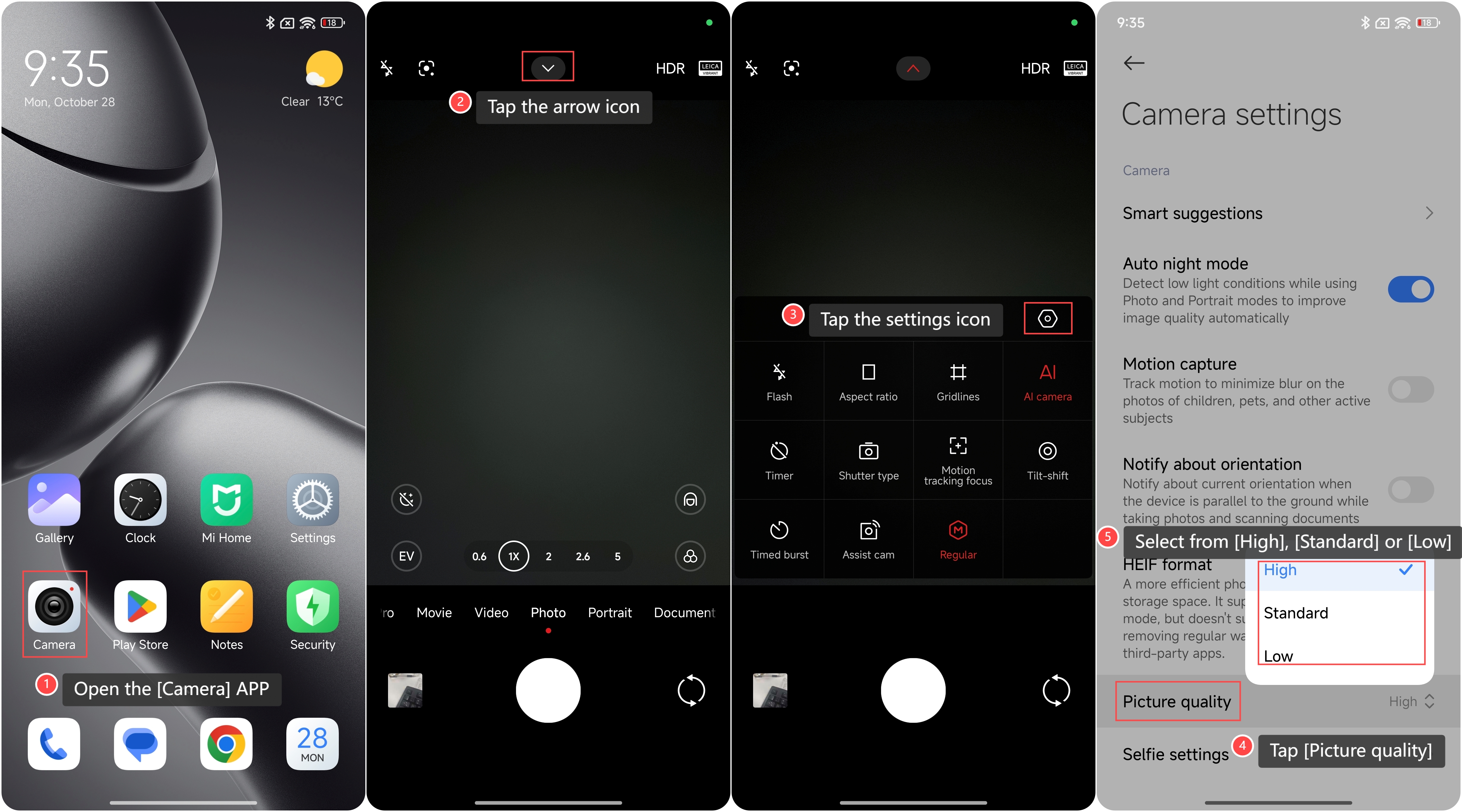 Xiaomi 14T hỗ trợ cài đặt chất lượng hình ảnh, cho phép bạn kiểm soát các khía cạnh khác nhau về cách chụp và lưu trữ ảnh, ảnh hưởng đến kích thước, chi tiết và giao diện tệp. Cài đặt chất lượng hình ảnh xác định số pixel trong ảnh. Độ phân giải cao hơn cung cấp nhiều chi tiết hơn nhưng tạo ra kích thước tệp lớn hơn. Độ phân giải thấp hơn rất hữu ích để tiết kiệm dung lượng lưu trữ hoặc chia sẻ trực tuyến một cách nhanh chóng.