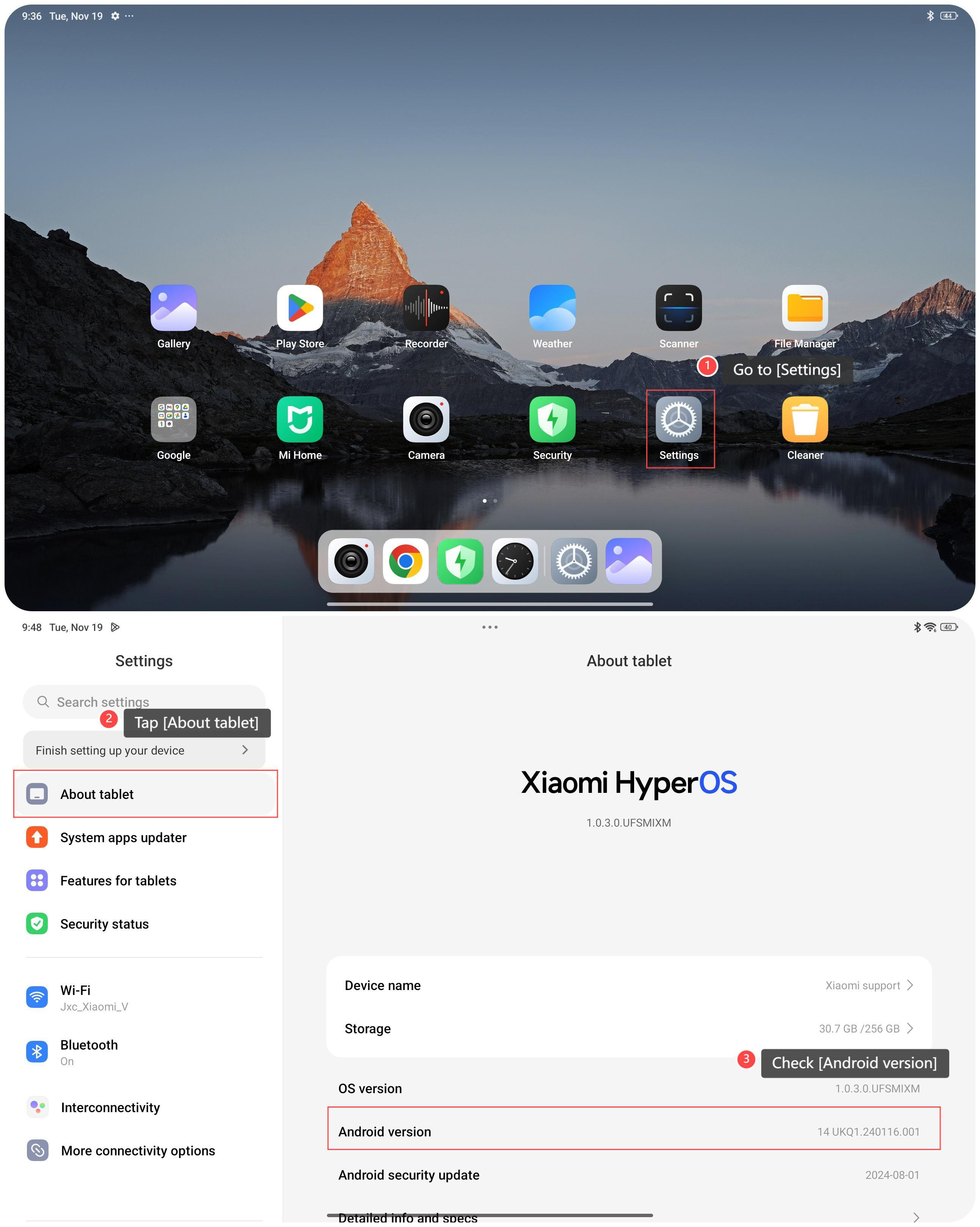 Để kiểm tra phiên bản Android trên máy tính bảng của bạn, vui lòng tham khảo các bước sau: