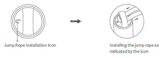 1. Khi lắp đặt dây nhảy, luồn một đầu của dây nhảy vào dây buộc của tay cầm theo biểu tượng lắp đặt dây nhảy;