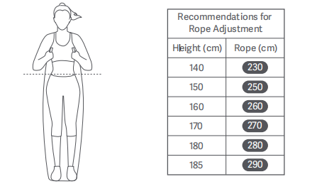 (2). Nếu chiều cao của bạn là 150cm, bạn nên điều chỉnh chiều dài dây thành 250cm;