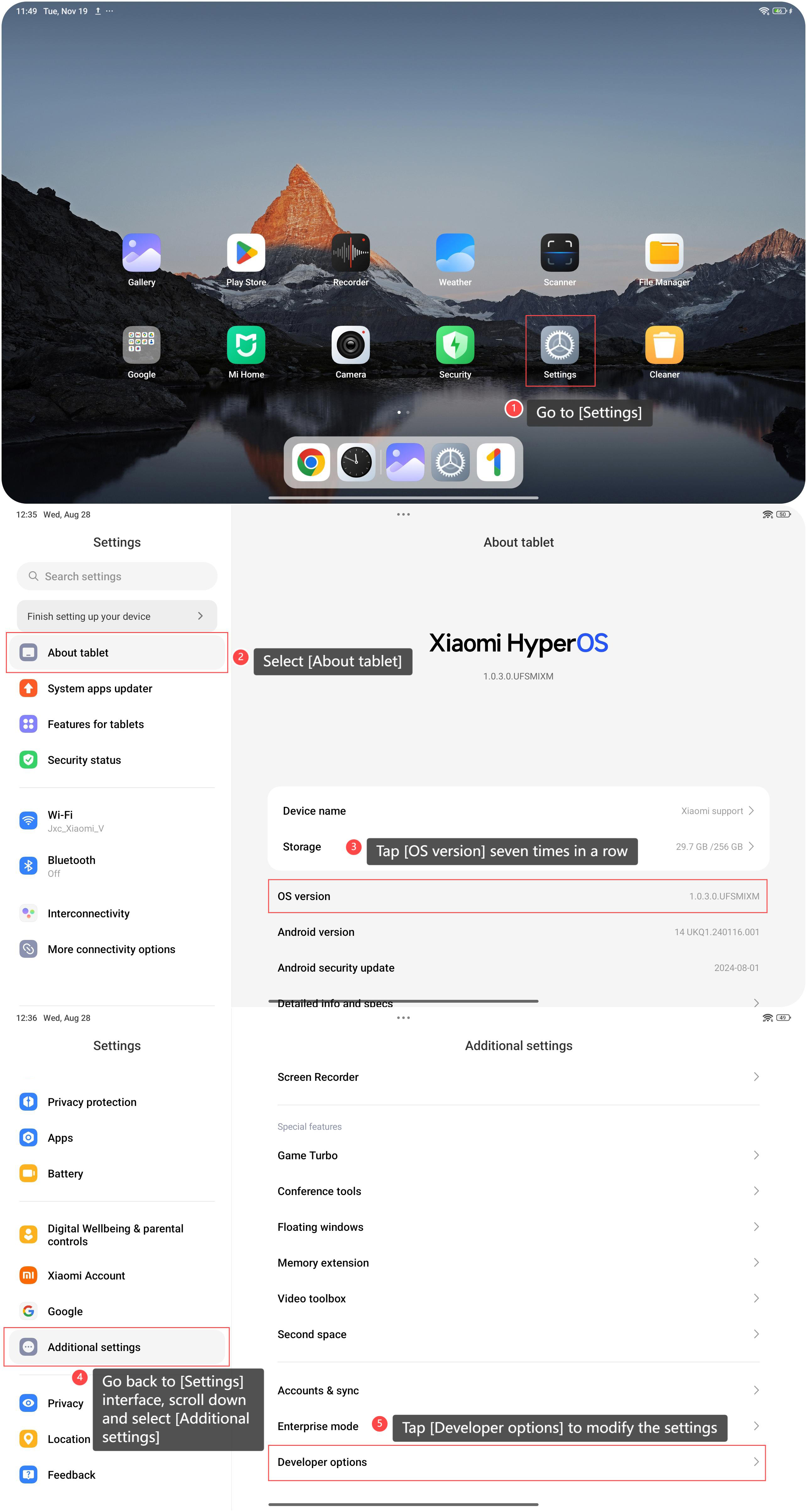 Để bật Tùy chọn nhà phát triển trên Redmi Pad Pro, vui lòng tham khảo các bước sau: