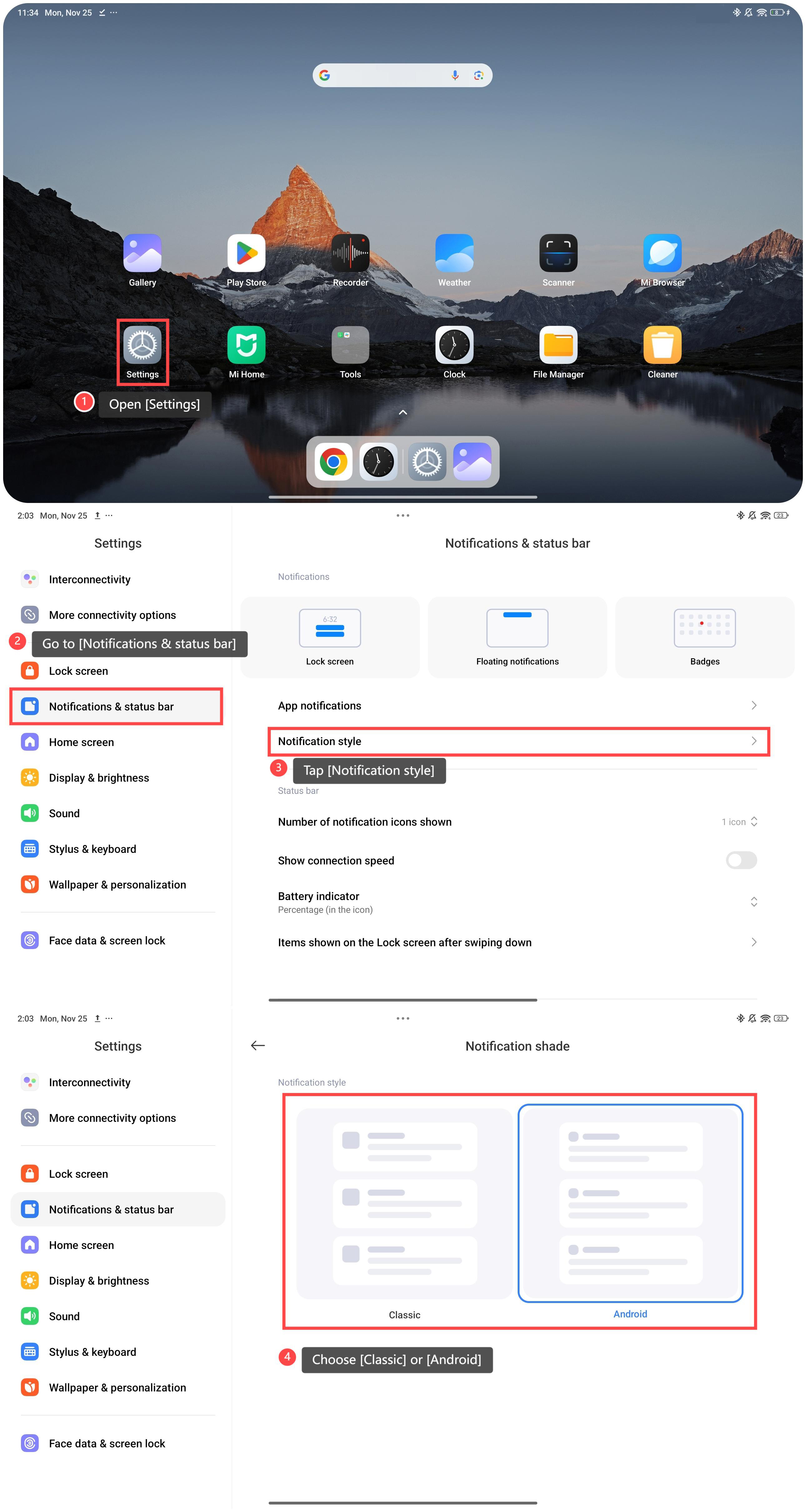 4. Bạn sẽ thấy có hai kiểu thông báo và bạn có thể chọn [Cổ điển] hoặc [Android] tùy thích.