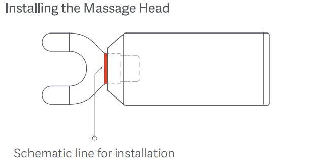 2. Khi lắp đặt đầu massage, dùng lực đẩy đế đầu massage vào họng súng massage, đảm bảo rằng đường trên đầu bằng phẳng với mõm;