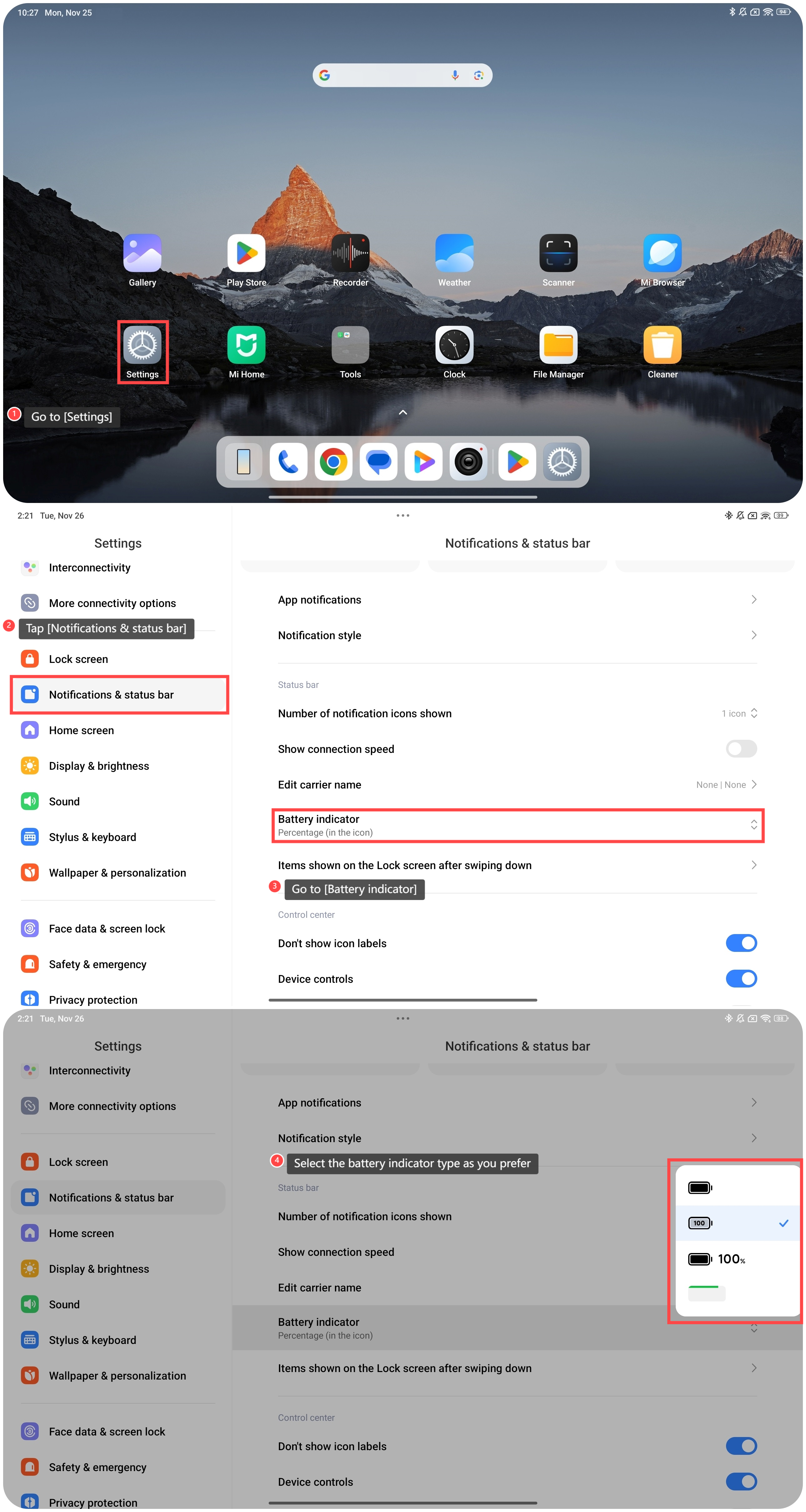 Để điều chỉnh loại chỉ báo pin trên Redmi Pad Pro 5G, vui lòng tham khảo các bước sau: