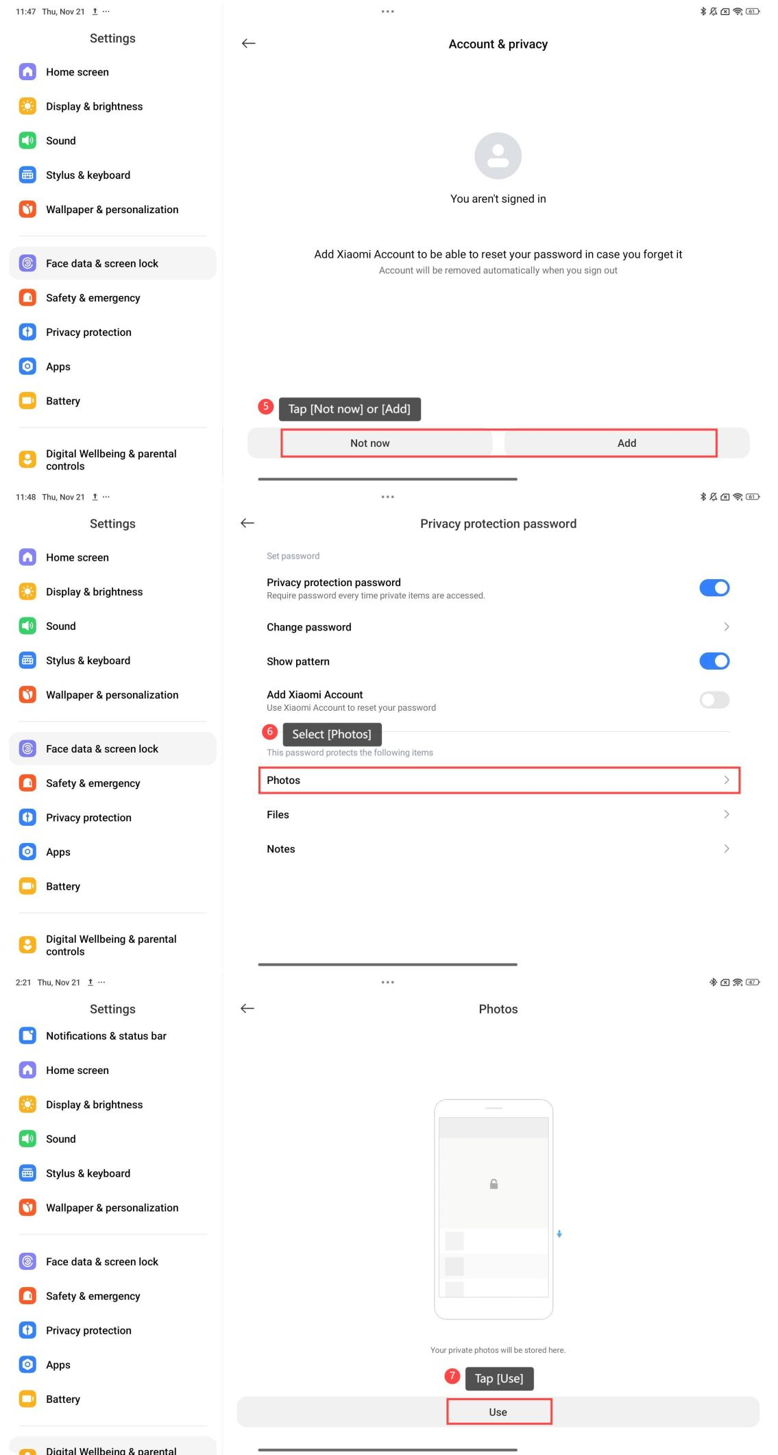 Làm thế nào để tạo và kiểm tra ảnh riêng tư trên Redmi Pad Pro 5G?