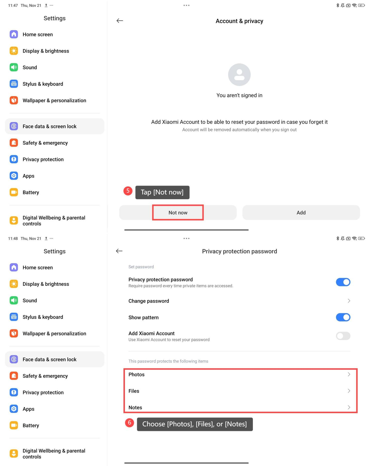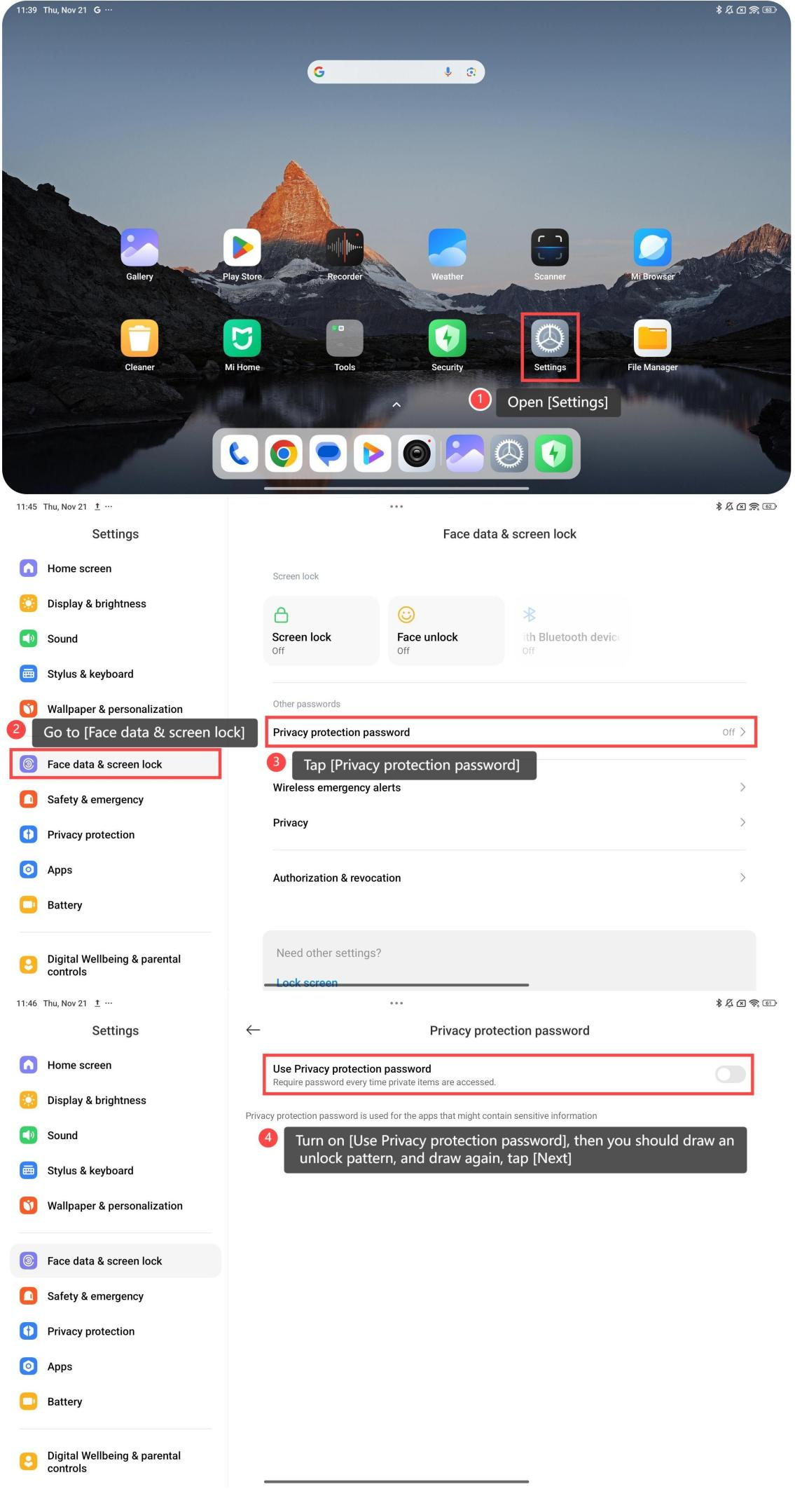 Để đặt mật khẩu bảo vệ quyền riêng tư, vui lòng tham khảo các bước sau: