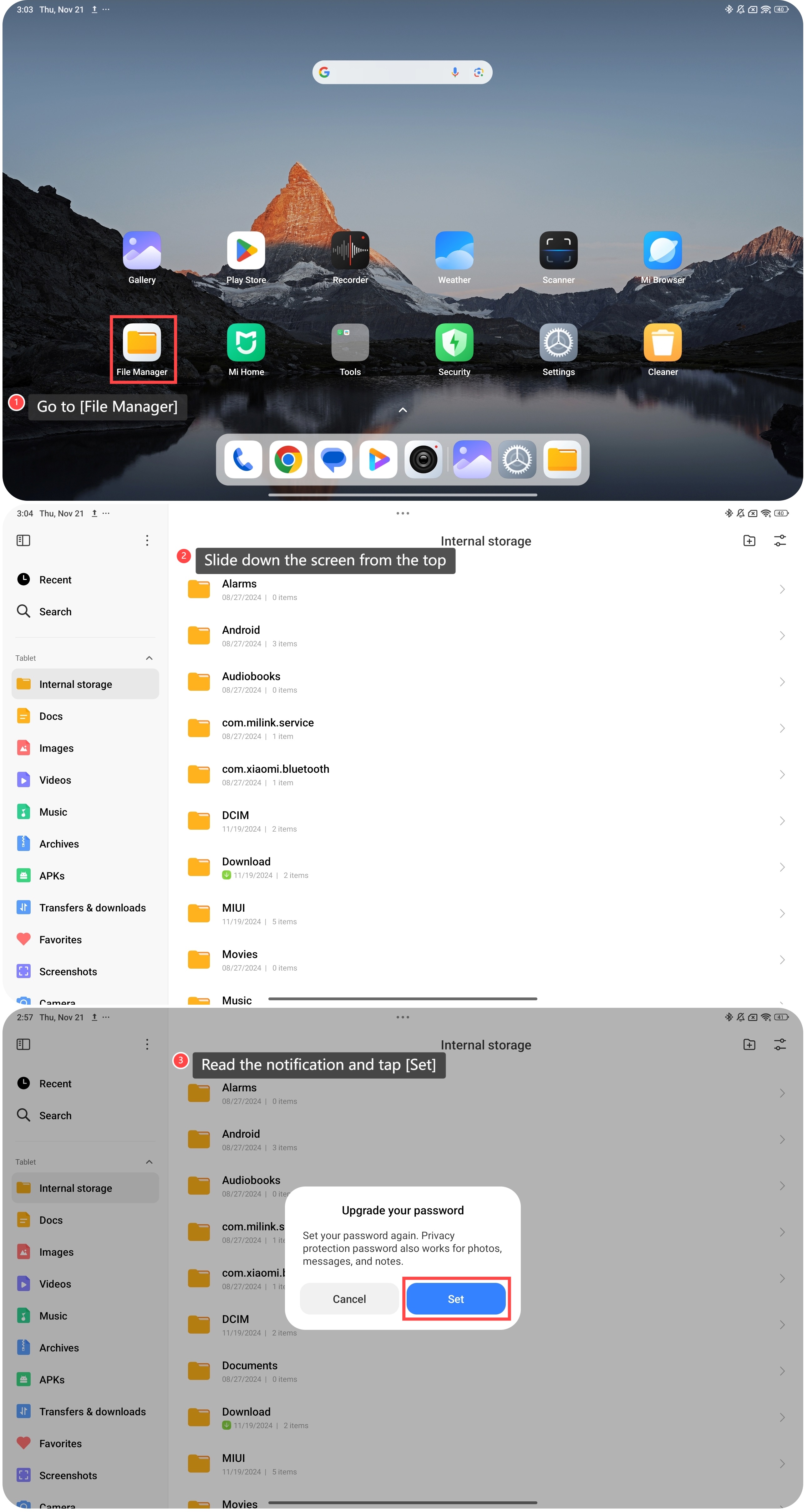 3. Nếu đây là lần đầu tiên bạn truy cập các tệp riêng tư, vui lòng đọc thông báo và nhấn vào [Đặt