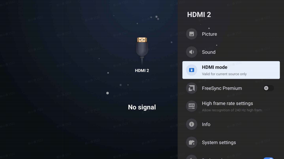 Nếu bạn muốn sử dụng chức năng FreeSync, vui lòng tham khảo các bước sau: 1. Trong nguồn HDMI, sử dụng điều khiển từ xa để vào menu HDMI; Ghi: 1. Đối với các khu vực Châu Âu / Đông Á / Đông Nam Á / Indonesia / Trung Đông & Châu Phi / Châu Mỹ Latinh, hãy nhấn và giữ nút [Cài đặt] để vào menu; 2. Đối với vùng CIS, nhấn và giữ nút [Patchwall] để vào menu. 2. Bật [FreeSync Premium]. Ghi: Có 3 cổng HDMI, nhưng chỉ có cổng HDMI 1 và 2 hỗ trợ chế độ HDMI 2.1 thực sự. • HDMI 1 - Hỗ trợ 4K - 120Hz (Nâng cao) / 4K - 144Hz (đồng bộ hóa tự do) / 1080p - 240Hz (DLG) • HDMI 2 - Hỗ trợ 4K - 120Hz (Nâng cao) / 4K - 144Hz (freesync) / 1080p - 240Hz (DLG) • HDMI 3 - Hỗ trợ 2K - 120Hz (Nâng cao) / 1080p - 240Hz (DLG)