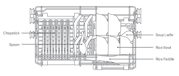 Xiaomi Tabletop Dishwasher có thể rửa 5 bát cơm, 3 bát mì, 3 ly, 2 cốc, 10 đũa, 5 thìa, 2 đĩa sâu, 4 đĩa nông, 3 đĩa gia vị, 1 mái chèo gạo và 1 muôi súp trong một chu kỳ.