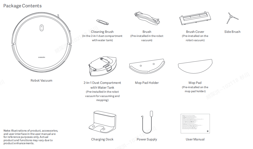Trả lời: 1.Lần đầu tiên bạn nhận được Máy hút bụi, bạn nên thực hiện các bước sau, Xiaomi Robot Vacuum E10C chứa pin 2600mha, nên sử dụng sau khi sạc đầy.