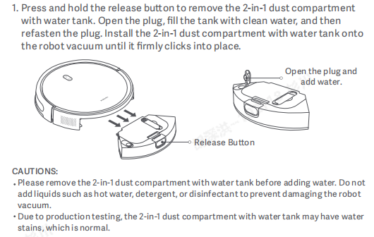 40.Q: Xiaomi Robot Vacuum E10C có vết nước trong ngăn chứa nước 2 trong 1 ra khỏi hộp có bình thường không?