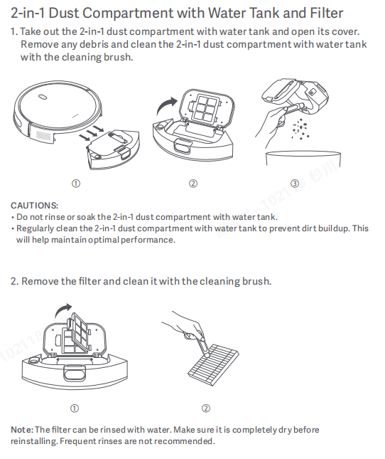 23.Q: Làm thế nào để bảo dưỡng hộp đựng bụi và bộ lọc của Xiaomi Robot Vacuum E10C?Đáp: