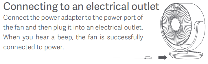 A: Kết nối bộ đổi nguồn với cổng nguồn của quạt và sau đó cắm vào ổ cắm điện. Khi bạn nghe thấy tiếng bíp, quạt đã được kết nối thành công với nguồn điện.