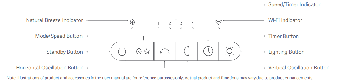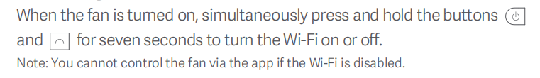 (1) Nhấn và giữ đồng thời [Standby Button] và [Mode / Speed Button] trong bảy giây. Khi bạn nghe thấy tiếng bíp dài, kết nối Wi-Fi đã được đặt lại và quạt được khôi phục thành công về cài đặt gốc. Sau đó, quạt đang chờ kếtnối.