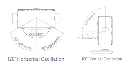 A: Xiaomi Smart Desktop Air Circulation Fan hỗ trợ dao động ngang 120° (60° sang trái, 60° sang phải) và dao động dọc 100° (90° lên trên, 10° xuống dưới).
