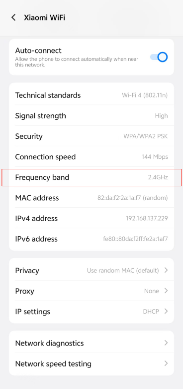2. Kiểm tra xem mạng gia đình có phải là tín hiệu 2.4GHz hay không;