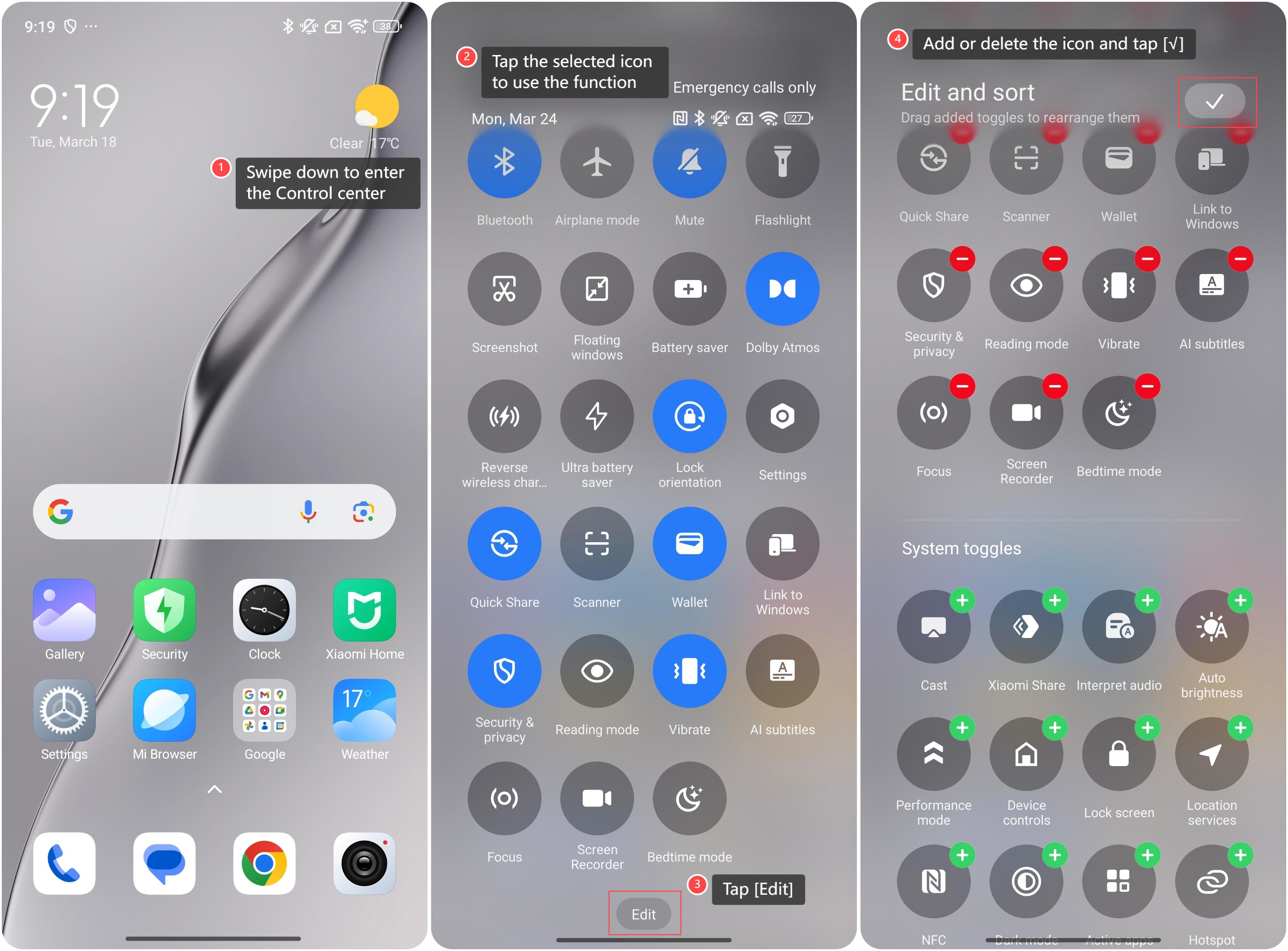 Để sử dụng Trung tâm điều khiển trên điện thoại của bạn, vui lòng tham khảo các bước sau: