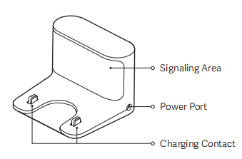 Đối với lần sử dụng đầu tiên, hãy đặt thiết bị chính trên đế sạc theo cách thủ công và căn chỉnh nó với các điểm tiếp xúc sạc. Bắt đầu sử dụng robot hút bụi sau khi nó được sạc đầy.
