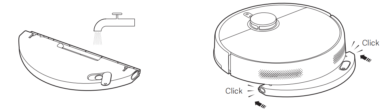 Nếu môi trường gia đình có nhiều bụi hoặc mảnh vụn, bạn chỉ nên bắt đầu với chế độ Hút bụi, không sử dụng chế độ Lau. Sau khi hoàn thành quá trình hút bụi ban đầu, hãy lắp các bộ phận lau nhà và sau đó chuyển sang chế độ hút bụi & lau nhà.