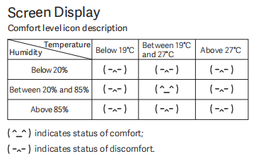 5. Phương pháp so sánh sai: Màn hình sử dụng cảm biến có độ chính xác cao. Không nên so sánh nhiệt độ và độ ẩm hiển thị với nhiệt độ / độ ẩm của dự báo thời tiết, máy tạo ẩm, máy điều hòa không khí và màn hình của các thương hiệu khác nhau.