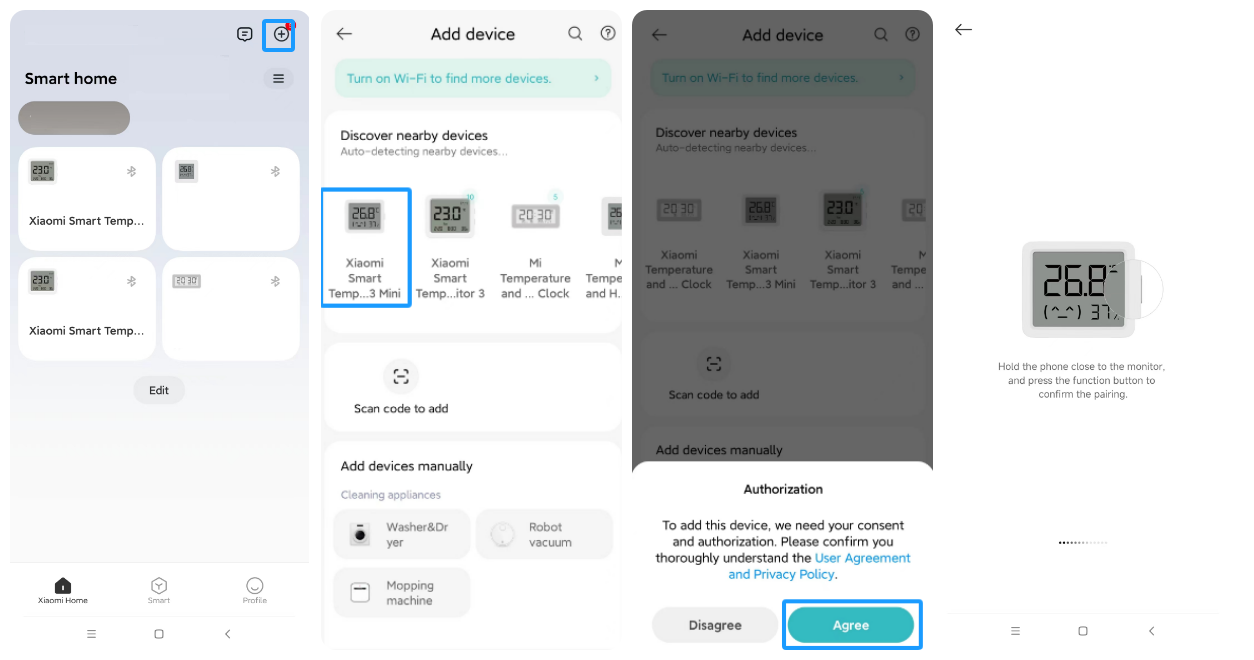 1. Q: Làm cách nào để kết nối Xiaomi Smart Temperature and Humidity Monitor 3 Mini với ứng dụng Xiaomi Home / Mi Home?