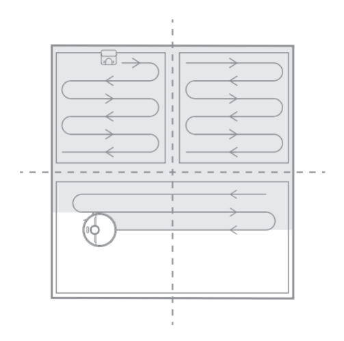Sau khi tòa nhà bản đồ được xây dựng, robot hút bụi thực hiện dọn dẹp từng phòng. Đầu tiên, nó làm sạch dọc theo mép và sau đó theo hình vòng cung. Phòng sẽ được dọn dẹp theo trình tự, trật tự và hiệu quả, bao phủ tất cả các khu vực mà không bị thiếu sót. Sau khi làm sạch xong, robot hút bụi sẽ tự động quay trở lại đế sạc.