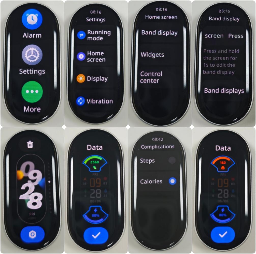 8. Dây đeo thông minh cũng hiển thị các chỉ số sức sống bao gồm lượng calo, số bước, đứng và di chuyển (chọn ba bất kỳ để hiển thị). Bạn có thể dễ dàng theo dõi các mục tiêu và tiến trình hàng ngày thông qua Số liệu thống kê.