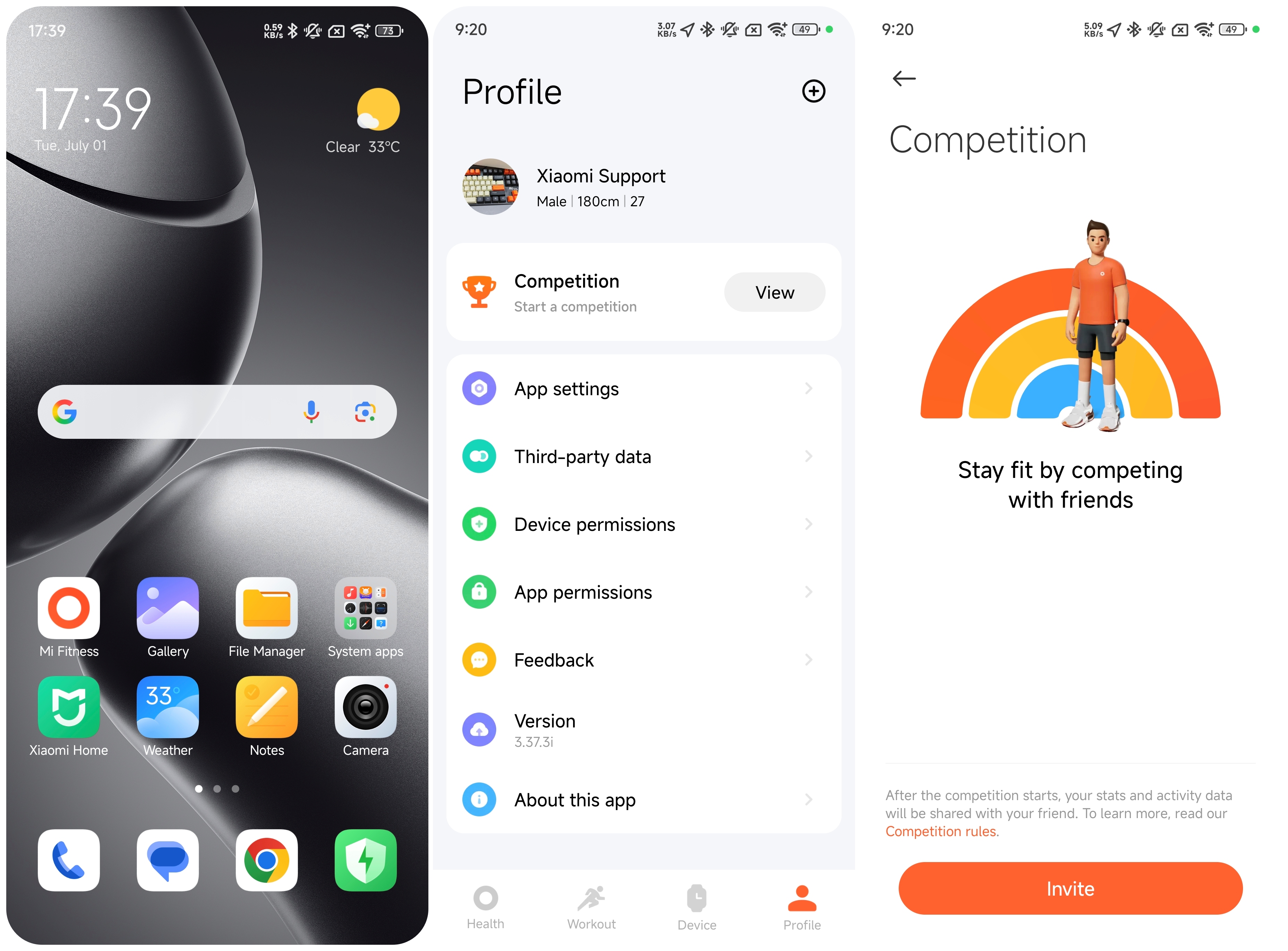 Bạn cũng có thể bắt đầu thi đấu kéo dài một tuần với bạn bè thông qua ứng dụng Mi Fitness. Bằng cách bắt đầu một cuộc thi, hãy mời bạn bè của bạn tham gia thử thách kéo dài 7 ngày để so sánh điểm sức khỏe và giữ động lực cho nhau. Người có nhiều điểm nhất vào cuối tuần sẽ nhận được một chiếc cúp độc quyền;
