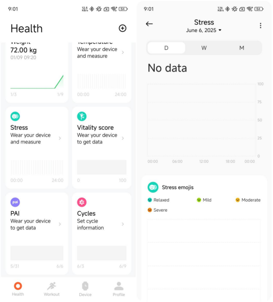 1. Biểu tượng cảm xúc căng thẳng: Ban nhạc sử dụng biểu tượng cảm xúc biểu cảm để giúp hình dung mức độ căng thẳng của bạn. Bạn có thể xem chúng trong ứng dụng Mi Fitness >> [Sức khỏe] >> [Căng thẳng] >> [Biểu tượng cảm xúc căng thẳng] hoặc xem nó bằng cách truy cập danh sách APP của ban nhạc >>[ Căng thẳng] >> [Tìm hiểu thêm];