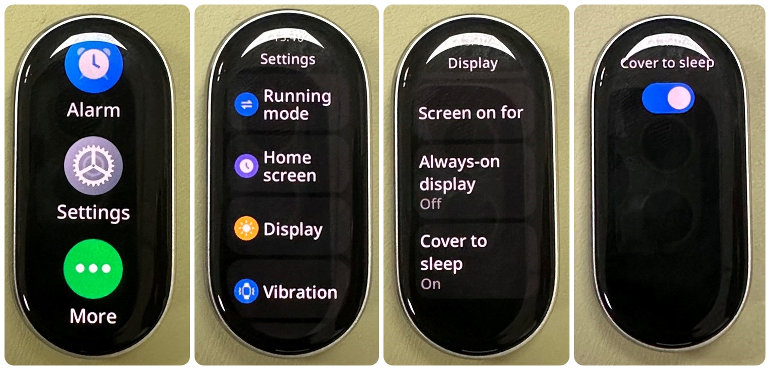 1. Màn hình kiểu đường băng AMOLED 1,72 inch với viền siêu hẹp 2,0mm ở tất cả các phía, mang lại tỷ lệ màn hình trên thân máy cao (73%), độ sáng tối đa 1500nits và tốc độ làm mới 60Hz mượt mà. Màn hình cũng có độ nhạy cảm ứng được cải thiện khi tay bạn ướt;