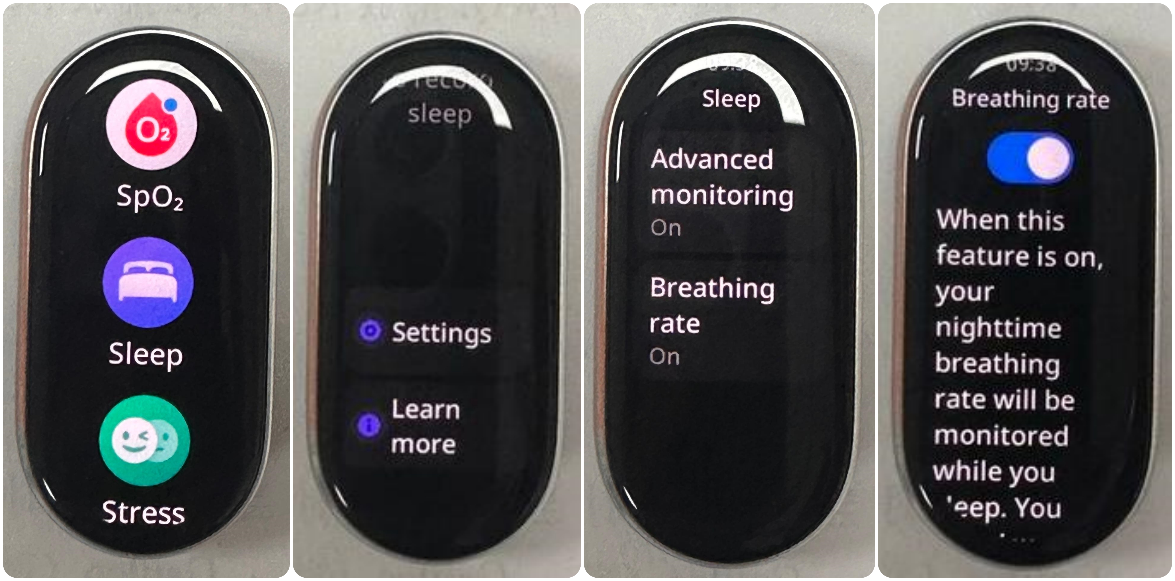 3. Nhịp thở trong khi ngủ: Khi dây đeo phát hiện bạn đang ngủ, nó sẽ tự động theo dõi nhịp thở trung bình của bạn. Bạn có thể view dữ liệu trong ứng dụng Mi Fitness >> [Sức khỏe] >> [Ngủ] >> [D]>> [Nhịp thở trung bình] hoặc view nó bằng cách chuyển đến danh sách APP của ban nhạc >> [Ngủ] >> [Cài đặt] >> [Nhịp thở];