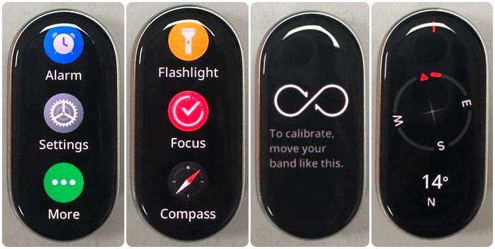 4. La bàn: Cảm biến từ tính tích hợp cho phép dây đeo hoạt động như một la bàn. Để sử dụng nó, hãy chuyển đến danh sách APP của băng tần >> [Thêm] >> [La bàn], sau đó làm theo hướng dẫn trên màn hình để xoay dây đeo và hoàn tất hiệu chuẩn. Sau khi hiệu chỉnh, giao diện la bàn sẽ hiển thị;