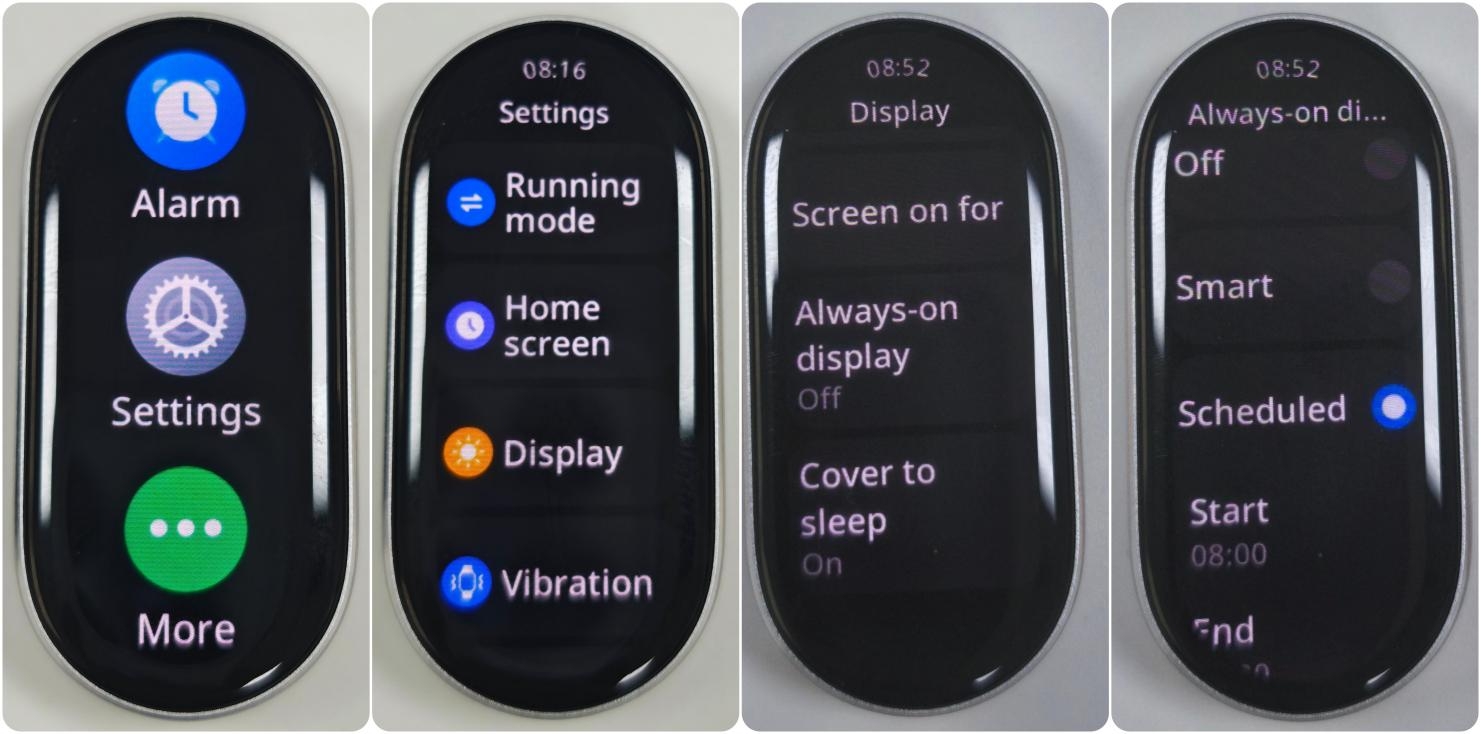 1. Màn hình kiểu đường băng AMOLED 1,72 inch với viền siêu hẹp 2,0mm ở tất cả các phía, mang lại tỷ lệ màn hình trên thân máy cao (73%), độ sáng tối đa 1500nits và tốc độ làm mới 60Hz mượt mà. Màn hình cũng có độ nhạy cảm ứng được cải thiện khi tay bạn ướt;