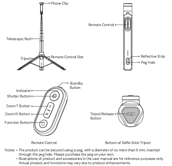 A: Gói tiêu chuẩn của Chân máy Xiaomi Zoom Floor Selfie Stick 62 '' bao gồm một gậy tự sướng, một túi đựng đồ và một hướng dẫn sử dụng.