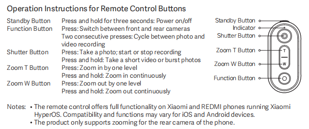 1. Điều khiển từ xa cung cấp đầy đủ chức năng trên điện thoại Xiaomi và Redmi chạy Xiaomi HyperOS. Khả năng tương thích và chức năng khác nhau đối với các thiết bị iOS và Android;