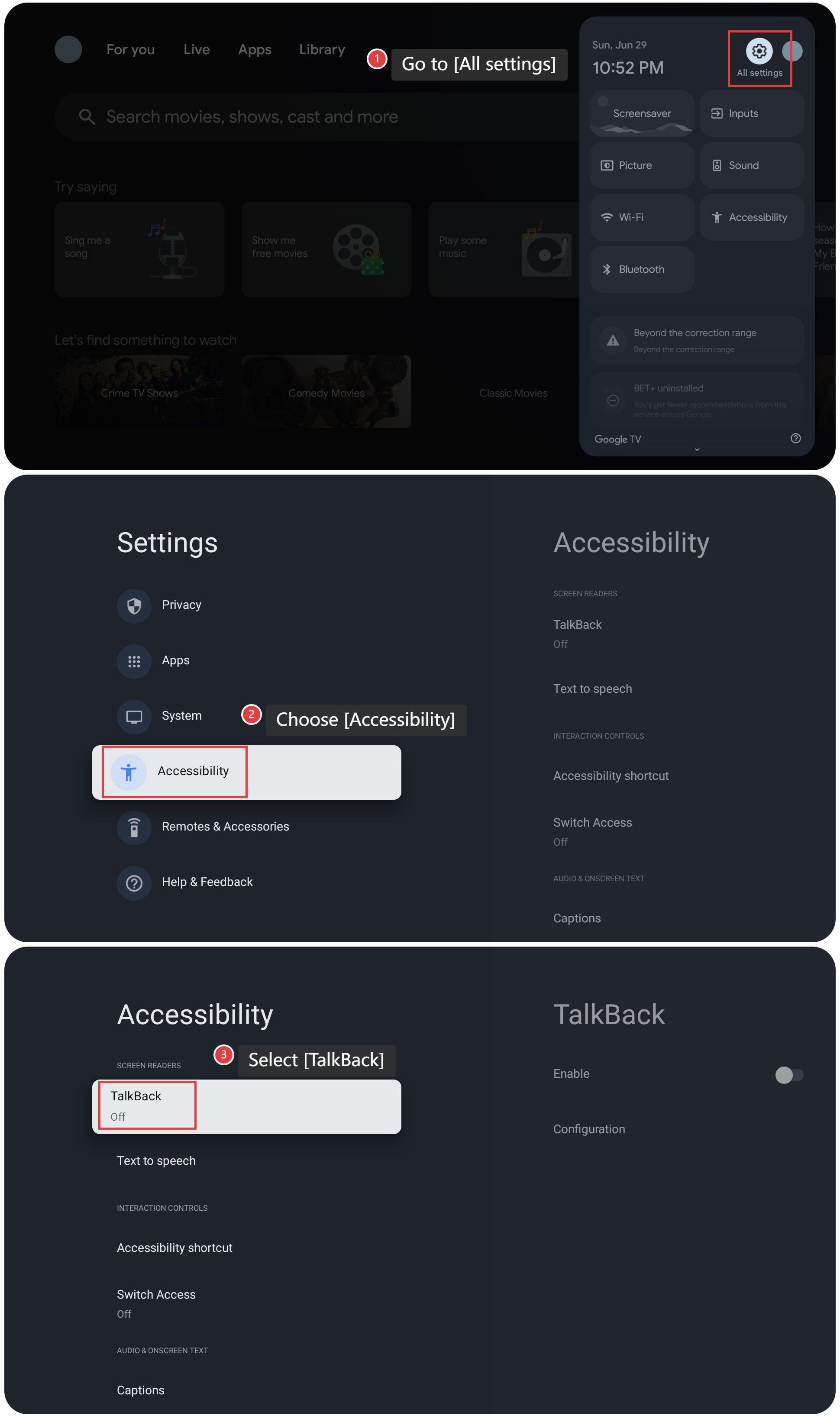 3. Chọn [TalkBack];