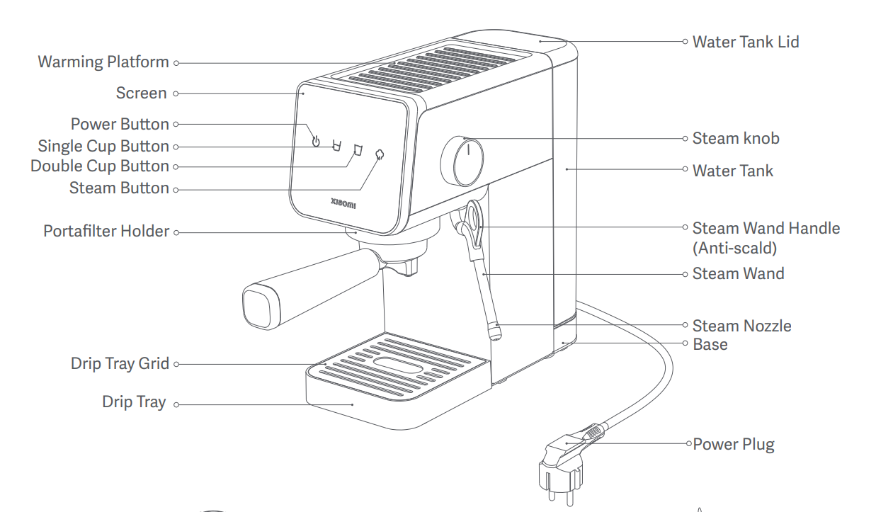 Máy pha cà phê bán tự động Xiaomi như sau: