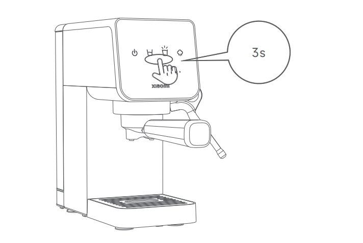 Ở chế độ chờ, nhấn và giữ đồng thời nút cốc đơn và nút cốc đôi trong 3 giây để khôi phục cài đặt gốc.