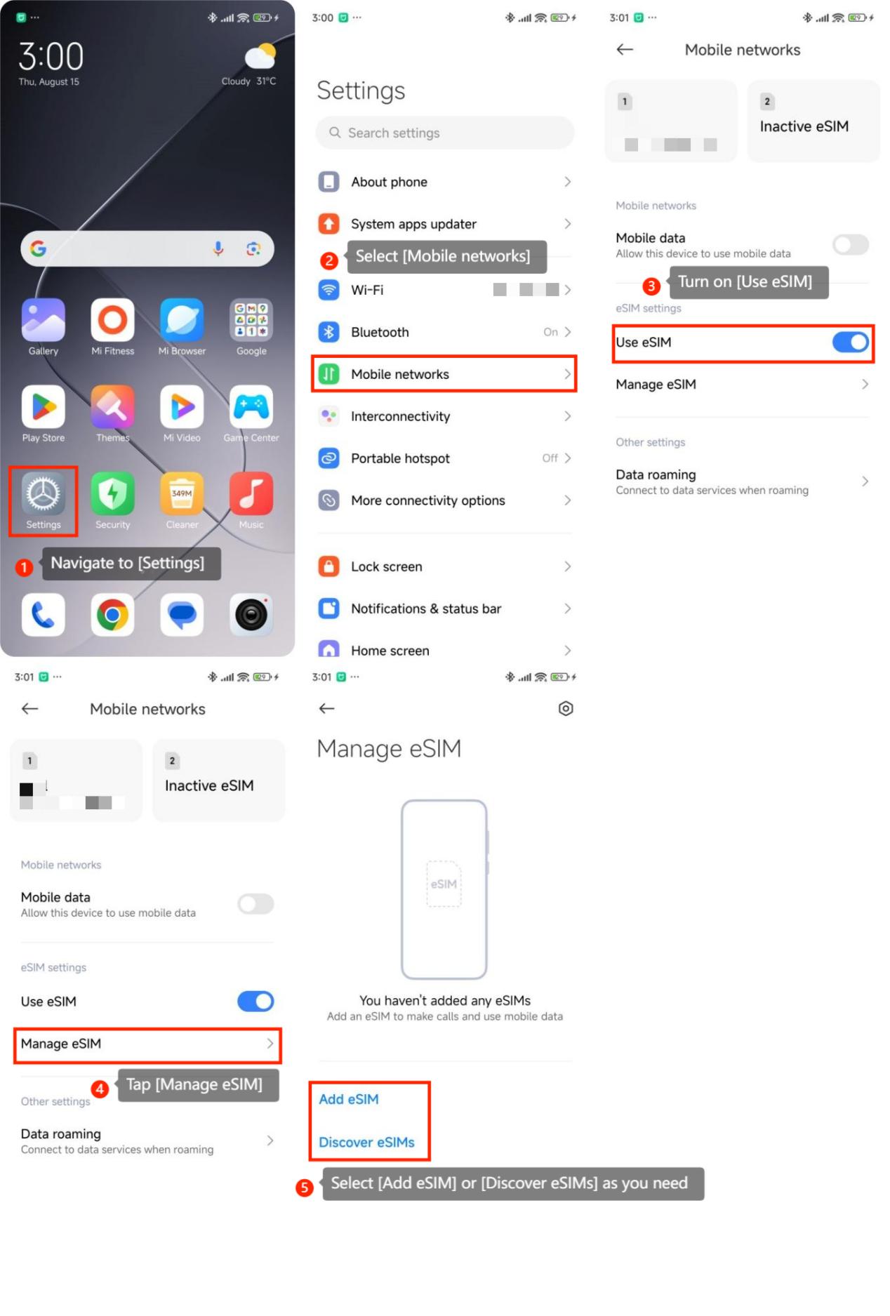 5. Chọn [Thêm eSIM] hoặc [Khám phá eSIM] khi bạn cần;