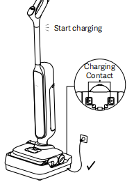 | Các điểm tiếp xúc sạc bị bẩn. | Rút phích cắm của máy hút và thử lại sau khi làm sạch các điểm tiếp xúc sạc. |