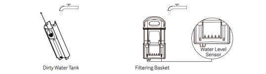 | Ngăn chứa nước bẩn đầy. | Đổ hết nước bẩn vào ngăn chứa nước bẩn và lắp lại. |