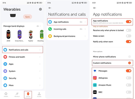 Kiểm tra xem Ứng dụng đã bật quyền thông báo một cách chính xác chưa. Nếu đó là hệ thống mới nhất của điện thoại Xiaomi, vui lòng vào [Cài đặt] >> [Bảo mật & quyền riêng tư] >> [Kiểm soát quyền riêng tư] >> [Trình quản lý quyền] >> [Thông báo] >> điều hướng đến Ứng dụng [Mi Fitness] >> tắt rồi bật;