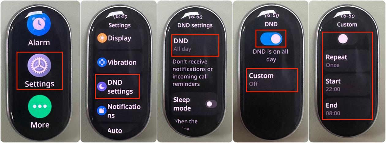 Trong phần Thêm, bạn sẽ tìm thấy các tính năng bổ sung như Sự kiện (chỉ được hỗ trợ trên điện thoại Xiaomi và thiết bị iOS), Tác vụ, Thở, Chu kỳ, Đồng hồ bấm giờ, Âm nhạc, Tìm điện thoại, Đồng hồ thế giới, Tắt tiếng điện thoại, Camera điện thoại điều khiển từ xa (chỉ được hỗ trợ trên một số kiểu máy nhất định), Hẹn giờ, Đèn pin, Tiêu điểm và La bàn.