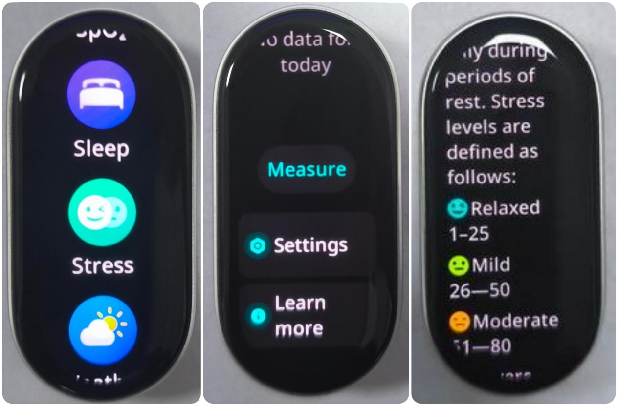 Biểu tượng cảm xúc căng thẳng: Ban nhạc sử dụng biểu tượng cảm xúc biểu cảm để giúp hình dung mức độ căng thẳng của bạn. Bạn có thể xem chúng trong Ứng dụng Mi Fitness >> [Sức khỏe] >> [Căng thẳng] >> [Biểu tượng cảm xúc căng thẳng] hoặc xem bằng cách đi tới danh sách Ứng dụng của ban nhạc >> [Căng thẳng] >> [Tìm hiểu thêm];