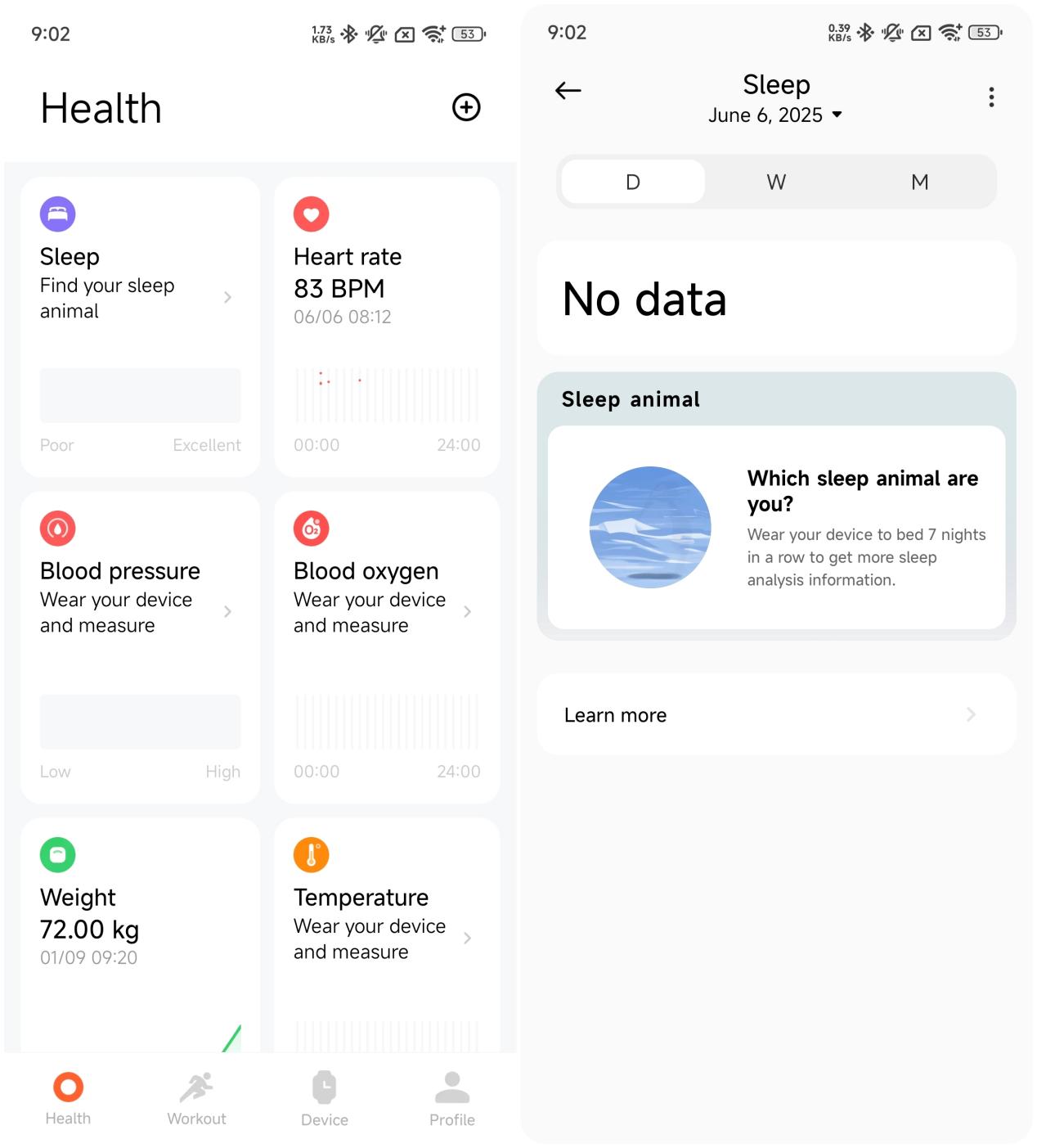 Gỡ cài đặt và cài đặt lại Ứng dụng Mi Fitness, sau đó mở lại Ứng dụng Mi Fitness và đợi khoảng 1 phút để kiểm tra xem dữ liệu bị thiếu có hiển thị hay không.