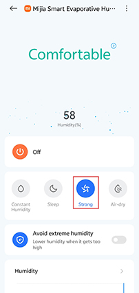 (1). Chế độ độ ẩm không đổi: Máy tạo độ ẩm tự động điều chỉnh lượng không khí dựa trên độ ẩm mục tiêu để duy trì độ ẩm không đổi trong phòng. Cài đặt mặc định cho độ ẩm là 55% RH, có thể thay đổi thông qua Ứng dụng Xiaomi Home.